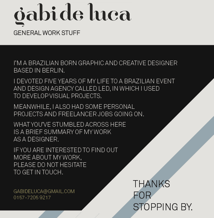 I’M A BRAZILIAN BORN / ITALIAN NATIONALITY, GRAPHIC AND CREATIVE DESIGNER BASED IN BERLIN.