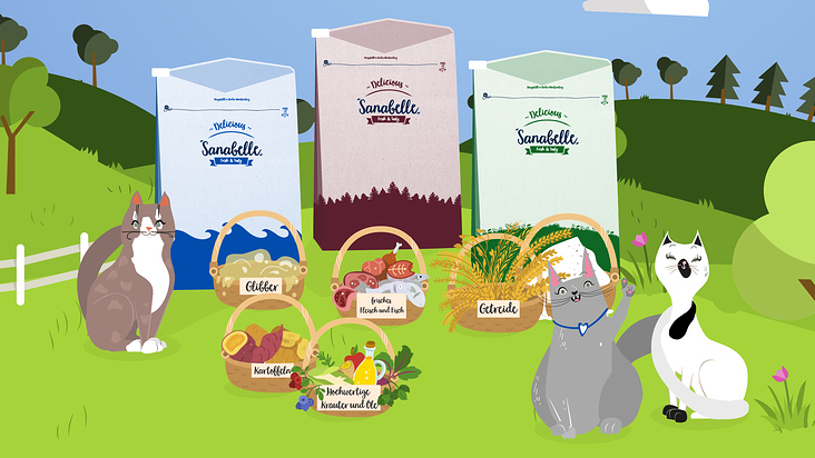 Sanabelle Katzenfutter: szenisch, spaßig, bunt!
